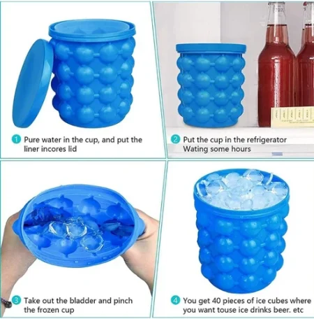 1 L Silicone Ice Cube Genie Ice Maker Revolutionary Space Saving Ice Cube Trays Silicone Ice Bucket (Multy Coler 1 L) Ice Bucket  (Red)